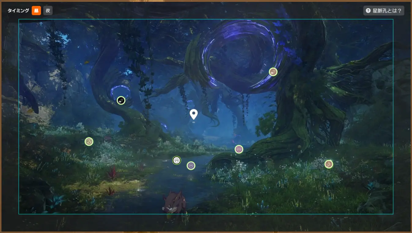 星脈孔の設定によって、同じ場所でも昼と夜、自由探索では前半後半で表示タイミングが変化します。