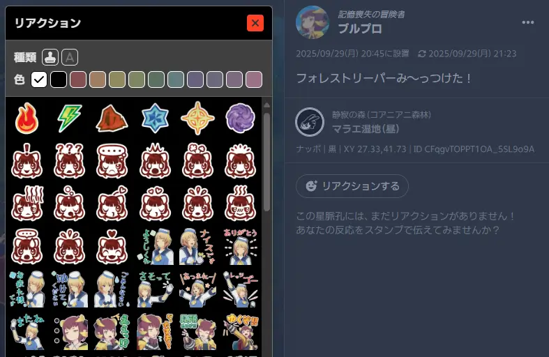 リアクションで反応を残し、みんなの星脈孔を賑やかにしよう!