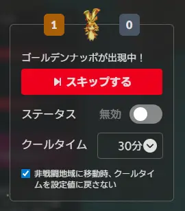 ボタンなど押下できる状態であれば黄緑色に、非活性なら赤になります。ネームドエネミー出現中に設定変更ができるようになりました!